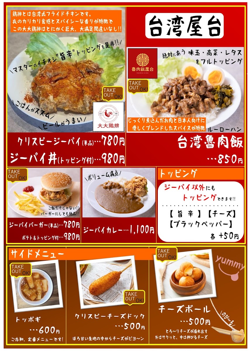 台湾の定番!魯肉飯(ルーローハン)!じっくり煮込んだお肉と日本人向けに優しくブレンドしたスパイスが特徴の定番メニュー。味玉、高菜、レタスをトッピング、どれも魯肉飯に合うんです。